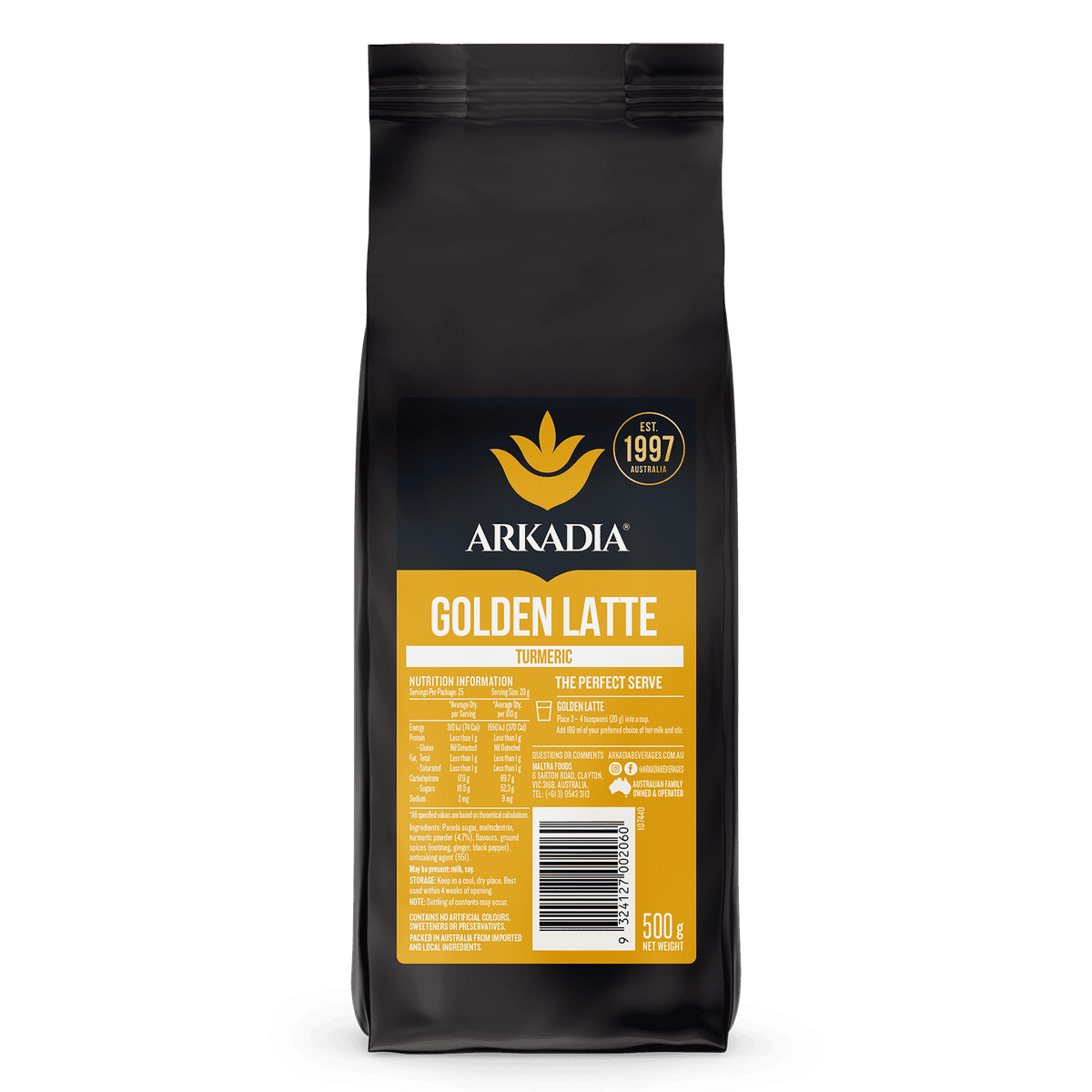 Arkadia Golden Latte 500g continues its growth as a favourite café beverage in Australia. Master blenders have artfully crafted the Arkadia Golden Turmeric Latte, a perfectly balanced blend of turmeric, spices and organic panela sugar.