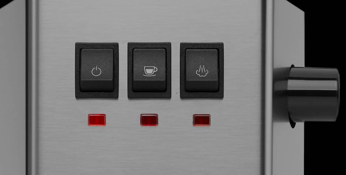 NEW ROCKER BUTTONS INTERFACE. An intuitive interface with dedicated indicator lights for on/off, espresso and steam for total control of the functions.