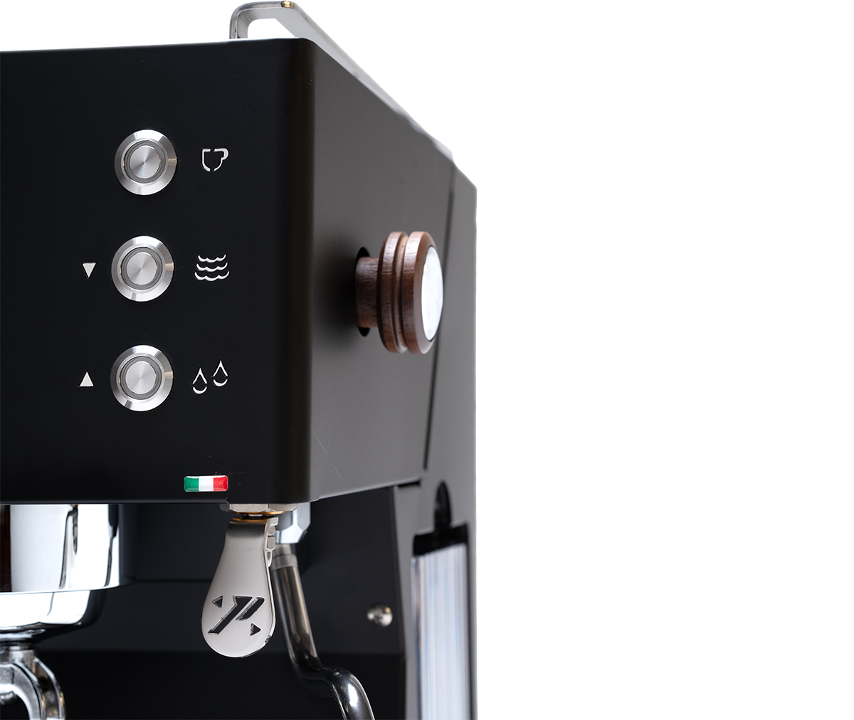 This machine allows you to regulate the temperature via PID and manage the pressure, from pre-infusion to the end of extraction, thanks to the profiling valve. The Pop Up is equipped with a 0.45 L insulated boiler, which ensures greater energy efficiency and thermal stability. You can set pre-infusion, Eco mode, and standby, as well as precisely control extraction times thanks to the integrated timer. Completing the barista experience, the wooden side knob adds a touch of elegance and allows for simple and precise steam control, for a truly professional experience in the comfort of your home.